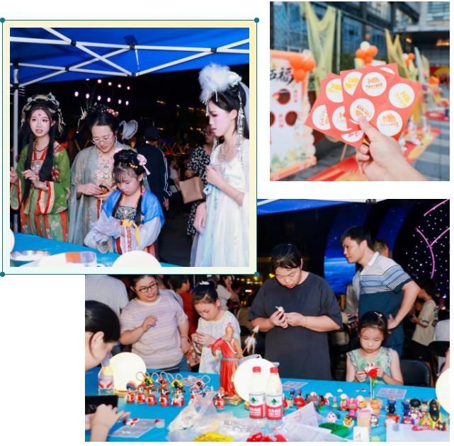 此次活动巧妙融合“展、演、集、游”四种形态,打破单一观演模式,构建沉浸式文化场景。NPC互动吟诗、集章打卡、亲子共制等设计,极大提升了参与感与趣味性,实现了非遗传播从“被动接受”到“主动探寻”的转变。