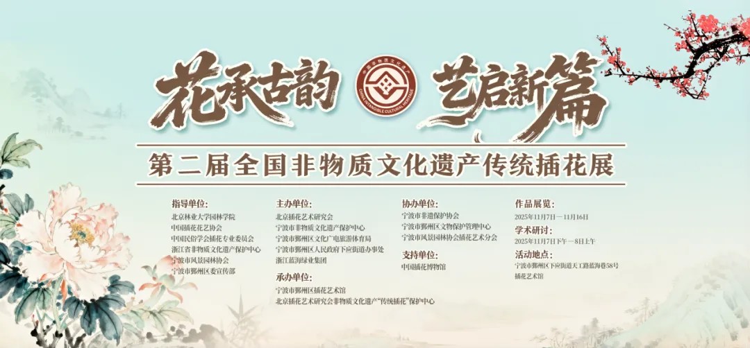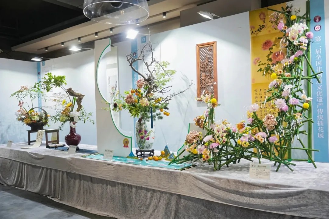 为深入推动非物质文化遗产的保护与传承,促进传统插花艺术的交流与发展,在各级指导单位的支持下,由我市非物质文化遗产保护中心等单位共同主办的第二届全国非物质文化遗产传统插花展,于11月7日在宁波市鄞州区中国插花艺术馆盛大开幕。本届展览以“花承古韵·艺启新篇”为主题,汇聚了来自全国各地的42个非遗插花项目,百余名传统插花艺术家齐聚甬城,共同呈现了一场融汇古今、精彩纷呈的非遗盛宴。
