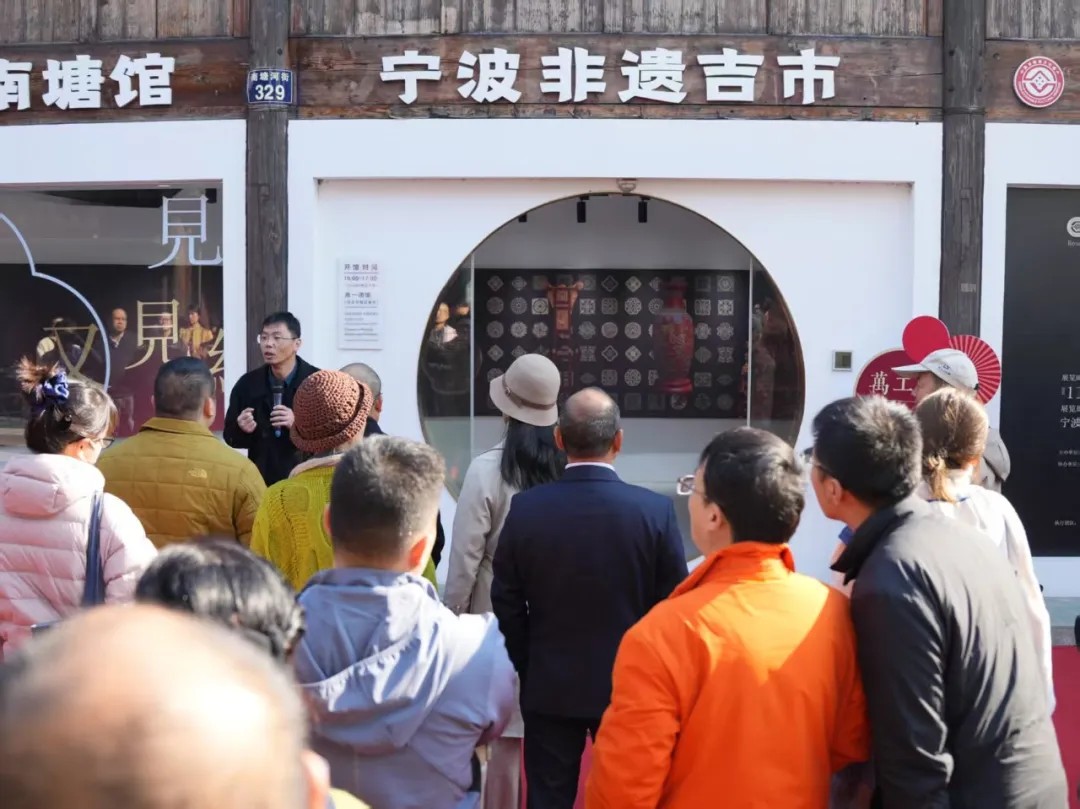 本次培训为期三天,课程内容丰富、形式多样。特邀中国国际茶文化研究会学术委员王建荣、中国美术学院教授王其全、宁波市非物质文化遗产保护协会副会长竺蓉等专家为学员授课。非遗体验环节,学员们参观了南塘非遗馆“又见红妆·爱情与亲情——宁波非遗精品系列展”,三关六码头非遗研学课堂,通过实地观摩深切感受非遗的当代实践与活化利用。此外,还专门组织了各区县市非遗分管干部与传承人交流心得体会,通过分享经验、探讨问题,达成非遗传承保护共识。